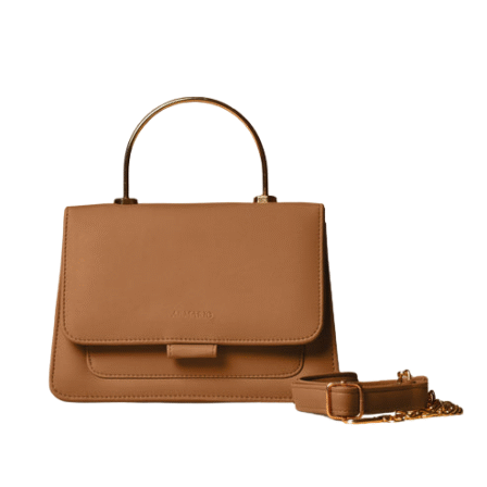 Structure: Minimalist tan crossbody with secure zip closure and front pocket with snap button.