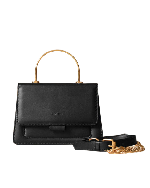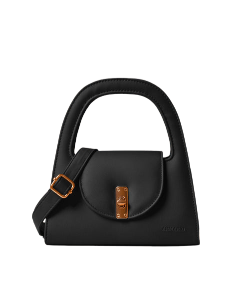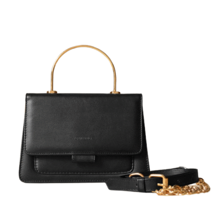 Material: Premium faux leather in classic black with polished gold-tone hardware.