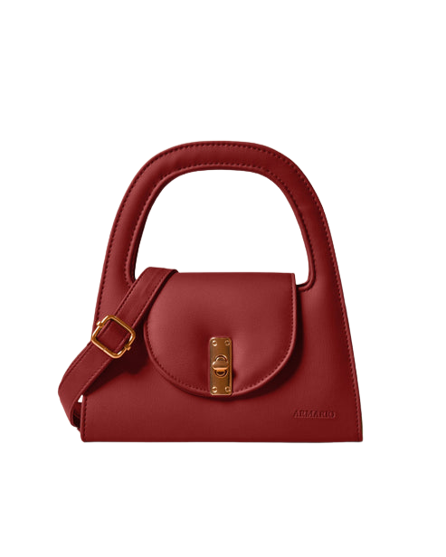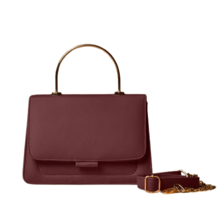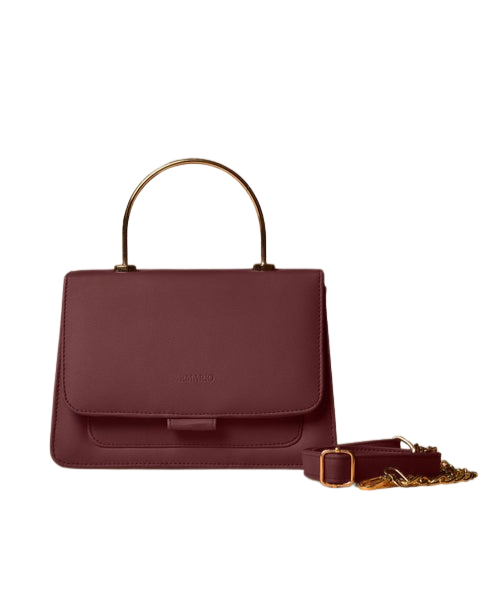 Structure: Sleek maroon crossbody with a flap closure and adjustable strap.