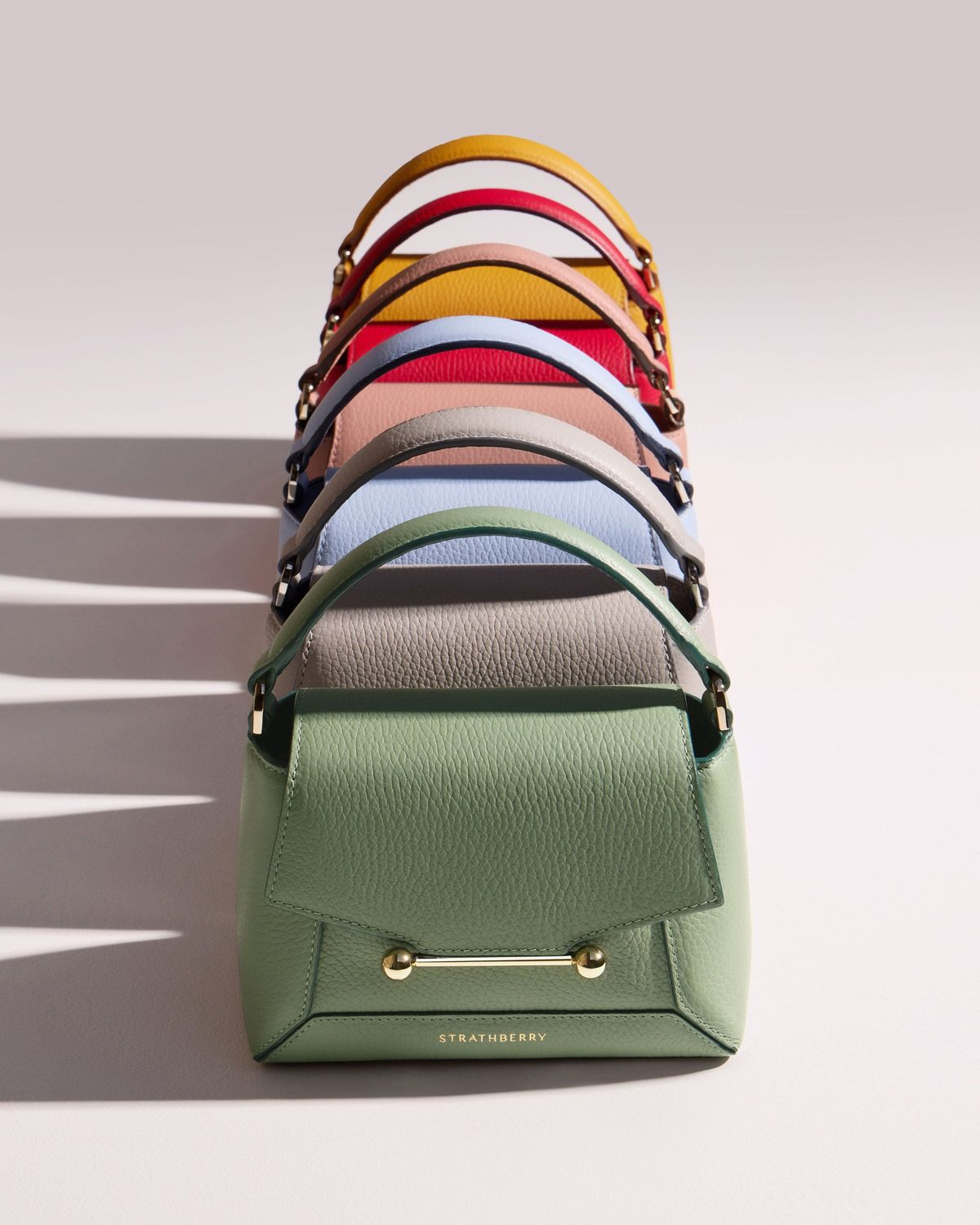 Structure: Sleek tote bag with secure strap closure and matching mini pouch for essentials.