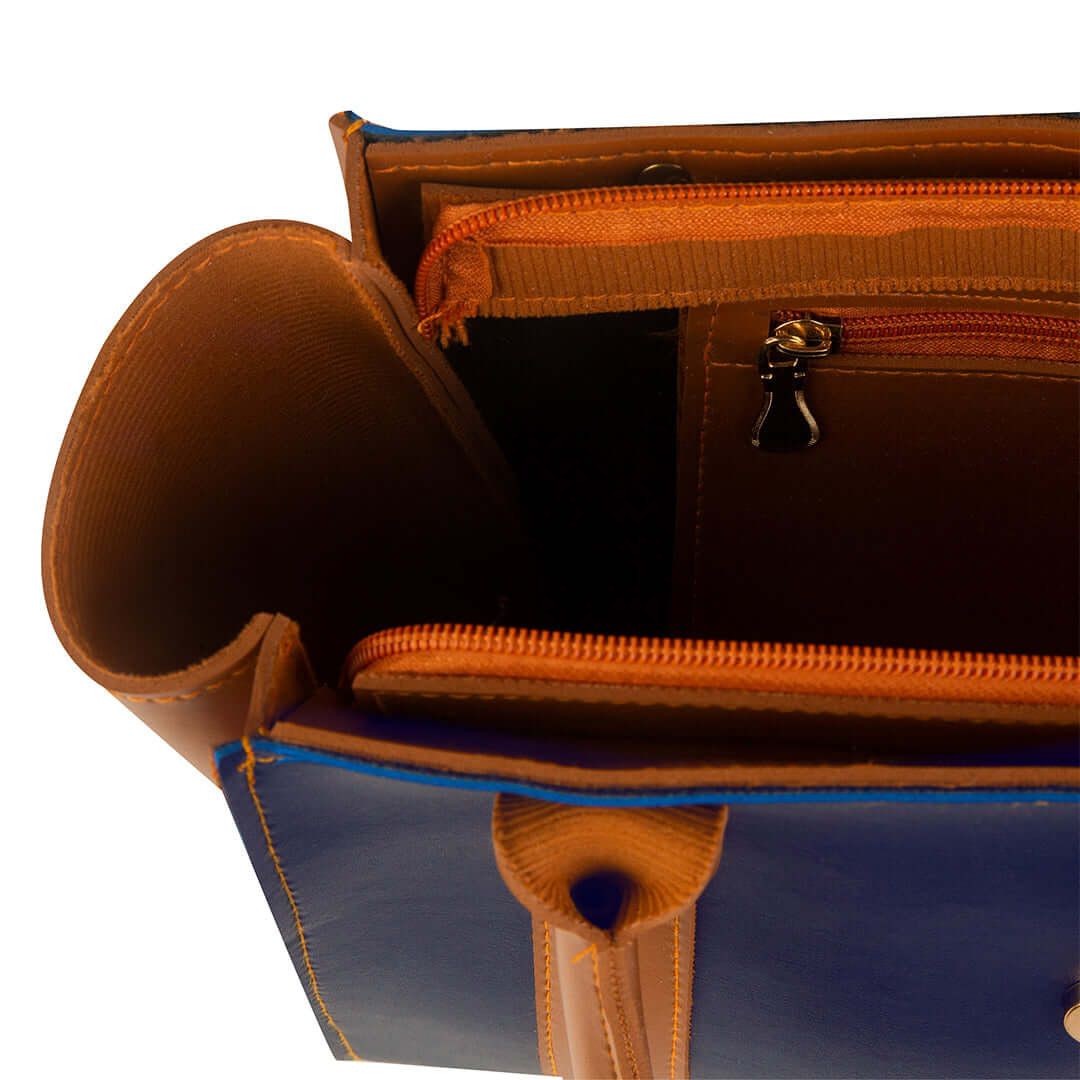 Introducing the CORAL BLUE tote bag — a striking blend of elegance and modern style. Crafted from premium faux leather, this bag features a unique dual-tone design in deep blue and rich tan, giving it a refined yet versatile look. Designed with sturdy top handles and a secure magnetic closure, it ensures both functionality and style. Its structured silhouette offers enough room for your daily essentials, making it the ideal choice for office, shopping, or casual outings. With its polished finish and fine craftsmanship, CORAL BLUE is a timeless tote that complements every wardrobe