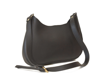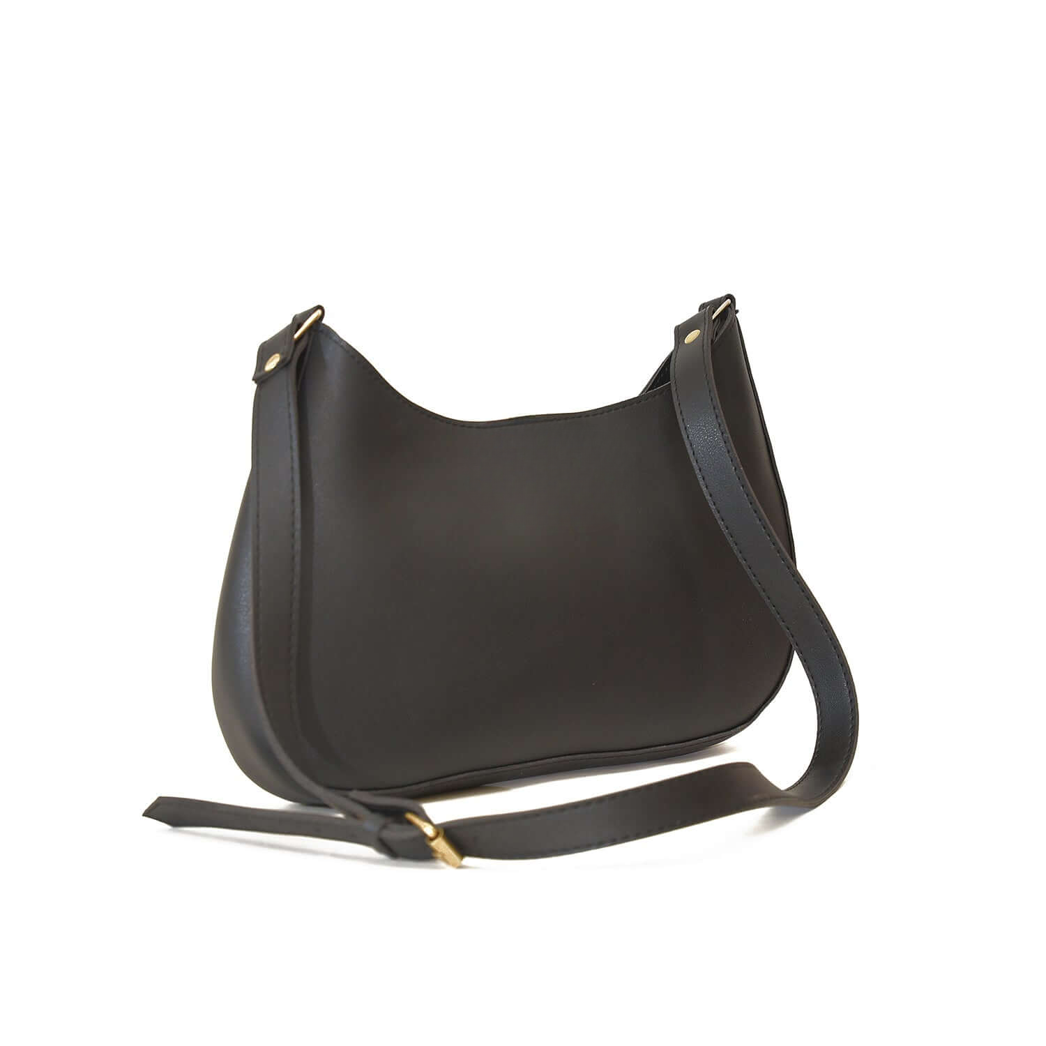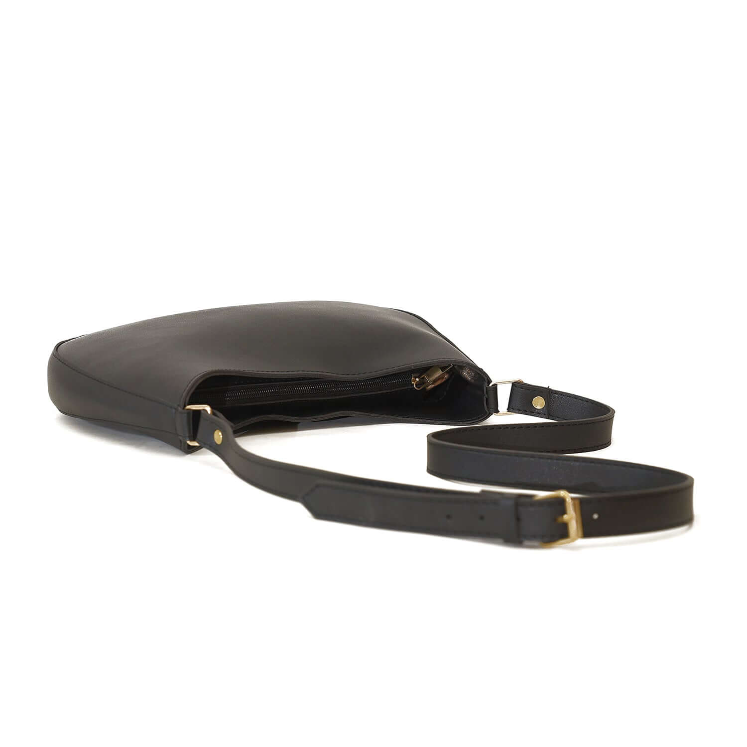 Material: Premium faux leather in classic black with polished gold-tone hardware.