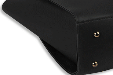 Material: Premium faux leather in classic black with polished gold-tone hardware.