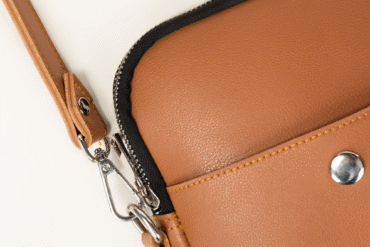 Structure: Minimalist tan crossbody with secure zip closure and front pocket with snap button.